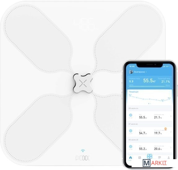 Picooc S3 V2 — флагманская модель второго поколения умных весов Picooc. Более высокая точность определения состава тела, новые параметры: измерение пульса, тонуса и баланса тела. С Picooc S3 V2 у вас появится больше возможностей следить за показателями здоровья — разберемся во всех улучшениях.Точность измерений. Во втором поколении умных весов Picooc впервые используется метод многофазного биоимпеданса MFIM (Multi-Frequency Impedance Measurement), что на 30% снижает погрешность определения состава тела по сравнению с другими бытовыми умными весами.Пульс. Благодаря умным весам вы сможете отслеживать ЧСС (Частота сердечных сокращений) при каждом взвешивании.Тонус тела. Этот показатель был специально разработан для системы оценки и мониторинга здоровья PHMS (Picooc Health Measurement System). Он отражает общее состояние энергетического ресурса тела. Низкий индекс тонуса — знак, что нужно уделить больше внимания рациону питания и отдыху, восстанавливая энергию.Баланс тела. Это не просто метрика, а специальный режим измерения качества работы вестибулярного аппарата. С его помощью можно оценить чувство равновесия. Важно понимать, что чувство равновесия можно и нужно развивать. Это поможет избежать бытовых травм, упростит освоение новых видов спорта и поможет в развитии пластичности. Вы можете проверить, насколько хорошо ощущаете и контролируете свое тело. Запустите в приложении тест на равновесие, встаньте на платформу одной ногой и закройте глаза. Весы проведут измерение баланса и, при необходимости, дадут рекомендации по его улучшению.Весы Picooc S3 V2 измеряют более 15 параметров: массу тела, количество жира, мышц, воды в организме, скорость основного обмена веществ и множество других — и сохраняют результаты на ваш смартфон. Вместительная квадратная платформа 32,2 × 32,2 см подойдет даже людям с 50-м размером ноги.