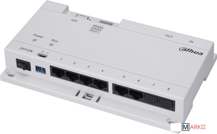 Dahua Technology VTNS1060A - PoE-коммутатор для питания домофонных систем. Через него может быть подключено до 6 внутренних мониторов при помощи кабеля Cat5e. Питание - 24 В. Потребляемая мощность - 0.2Вт (без нагрузки) и 45Вт (полная нагрузка).