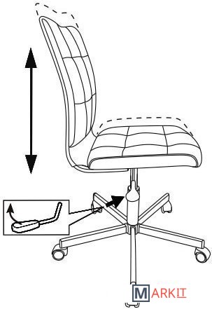 Колеса оснащены тормозом безопасности, реагирующим на изменение давления: стул не откатывается, когда вы садитесь или встаете.