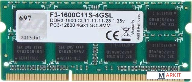 Markit » Оперативная память » Оперативная память G.Skill 8GB DDR3 SODIMM PC3-12800 F3-1600C11S-8GSL