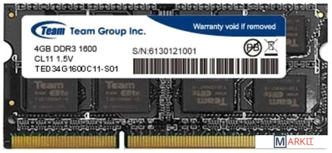 Markit » Оперативная память » Оперативная память Team Elite 4GB DDR3 SODIMM PC3-12800 [TED34G1600C11-S01]