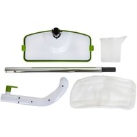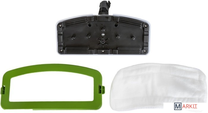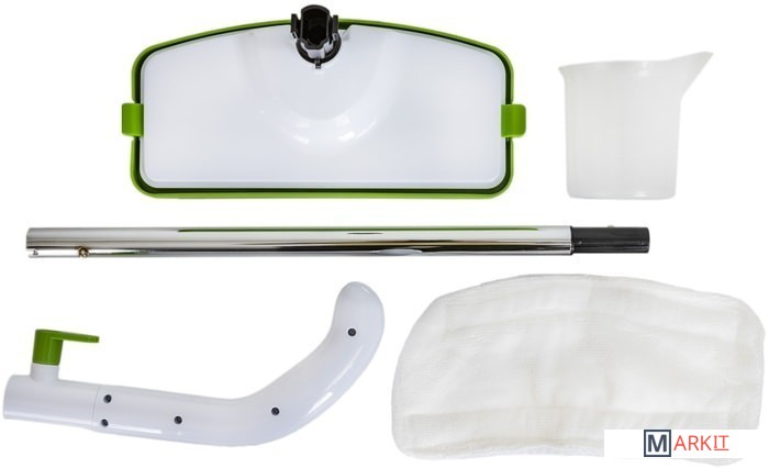 Комплектация - швабра;- насадка для очистки пола;- насадка для очистки ковров;- микрофибра;- резервуар для воды;- мерный стакан;- инструкция;- гарантийный талон.