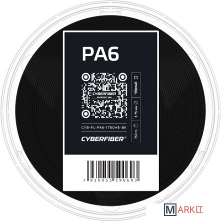 Markit » Расходные материалы для 3д принтера » Пластик CyberFiber PA6 1.75 мм 450 г (черный)