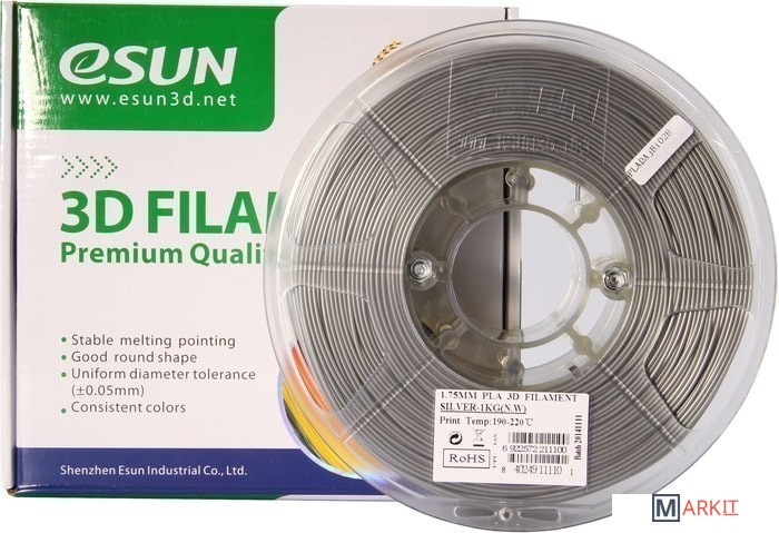 Markit » Расходные материалы для 3д принтера » Пластик eSUN PLA 1.75 мм 1000 г (серебристый)