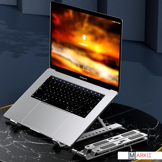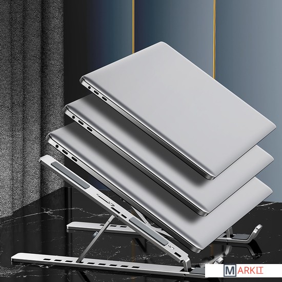 MAICONG LS501 - это универсальная подставка под планшет или ноутбук с диагональю до 17,3 дюймов, произведенная из высококачественного алюминия, имеет более прочную конструкцию, защищает с помощью силиконового покрытия, регулируется по ширине 5,5-20,5 см, поднимает на высоту от 6 до 16,5 см.