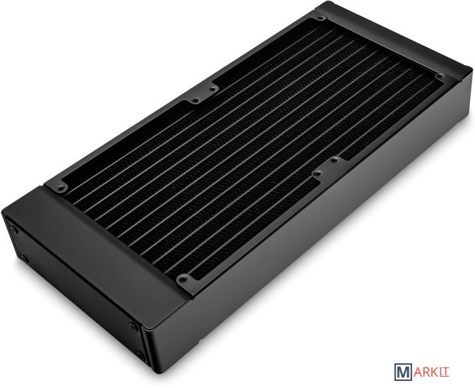 EK-CoolStream PE 240 - Универсальный медный радиатор, рассчитанный на установку 2 или 4 вентиляторов размера 120x120x25 мм (вентиляторы в комплекте не предусмотрены). Его габариты 280 x 130 x 38 мм, он подходит для установки в небольшие корпуса с крепежом под 240 мм радиатор и минимум 63 мм свободного пространства от него (с учетом стандартных 25 мм вентиляторов). Имеет пару отверстий под фитинги с резьбой G1/4.EK-CoolStream это обновленная линейка радиаторов от EKWB, включающая в свой состав три основные линейки типоразмеров устанавливаемых вентиляторов. Под 120 мм вентиляторы радиаторы серии SE PE XE (отличаются между собой толщиной), под 140 мм вентиляторы разработана серия CE и под 180 мм вентиляторы серия WE.Радиаторы EK-CoolStream созданы для тихой и максимально эффективной работы, сочетая идеальное соотношение ценыкачестваэффективности, радиаторы CoolStream оформлены в фирменном минималистичном стиле. Материал: медь 90% и латунь 10%. Базируется на технологии плоских каналов и гофроленты, проклеенной в два ряда между ними. Плотность ребер радиаторов составляет от 16 до 22 FPI, в зависимости от толщины и модели.Совместно с выпуском новой линейки радиаторов CoolStream инженеры EKWB, разработали специально для них новые вентиляторы EK-Vardar. Они идеально подходят для работы с радиаторами систем жидкостного охлаждения и без проблем справятся с продувом любой плотности ребер, при этом порадуют тихой работой, внешним видом, поддержкой PWM и качеством.Линейка радиаторов EK-CoolStream PE выделяется на фоне других за счет своей универсальности, продуманности и демократичной цены. Радиаторы EK-CoolStream PE имеют плотность ребер 19 FPI , что идеально подходит для работы с вентиляторами EK-Vardar в тихих режимах. Толщина радиатора/рабочего тела равна 38/22 мм.Совместимость с вентиляторами: 120x120x25 мм; фиксируются винтами с резьбой UNC 6-32