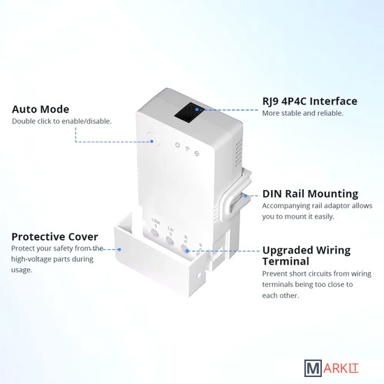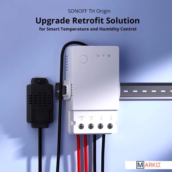 Sonoff TH Origin THR316 - это умное Wi-Fi реле, с функцией мониторинга температуры и влажности (датчики приобретаются отдельно), которое позволяет удаленно контролировать и устанавливать температуру и влажность, для включения/выключения электроприборов. Модель является обновлением версий Sonoff TH10/16.Напряжение питания 100-240 В, 50/60 ГцКоммутируемый ток 16 АКоммутируемая мощность 3 520 Вт (резистивная нагрузка)Поддерживаемый тип датчика DS18B20, AM2301, Si7021, THS01 до 60 м.Разъем подключения датчика RJ-9 (телефонный разъем 4P)Частота Wi-Fi 2.4GHz (IEEE 802.11 b/g/n)Рабочая температура -10 °C- 40 °CВлажность 5% -95%Материал корпуса PC V0 (трудно горючий пластик)Размер 98x54x31 мм