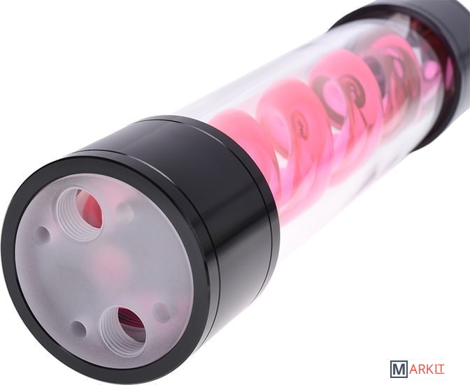 Резервуар для водяного охлаждения из плексигласа со спиралью. По 2 отверстия сверху и снизу. Отличается от стандартной версии Helix 250 более компактным размером, простыми крепежами в комплекте, отсутствием подсветки, а также меньшим количество подводных отверстий.