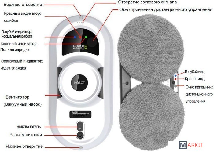 Комплектация | Робот Hobot-388Страховочный шнур (прикреплен к роботу)Пульт дистанционного управленияАдаптер питания (100 ~ 240 В, 50 ~ 60 Гц)Удлинитель постоянного тока (4 метра)Чистящие салфетки из микрофибры — 14 шт.Запасные кольца для салфеток — 2 шт. |