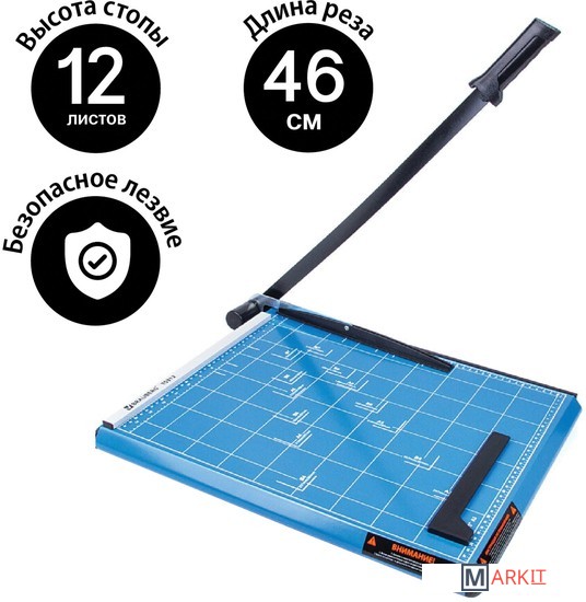 Сабельный резак для бумаги BRAUBERG «SABER» подходит для домашнего и офисного применения. Позволяет одновременно разрезать до 12 бумажных листов формата А4.Оснащен безопасным лезвием, регулируемым упором и автоматическим прижимом для бумаг. Рукоятка выполнена в анатомической форме, которая также препятствует соскальзыванию руки. Прочное металлическое основание. Удобная разметка рабочей поверхности и регулируемый упор позволяют точно наметить линию реза. Длина реза составляет 460 мм. Также имеются уголки для форматов А3, B4, А4, B5, А5, B6, B7. Резиновые ножки предотвращают скольжение по рабочей поверхности во время эксплуатации. Размер — 63х410х670 мм. Вес — 4,1 кг.
