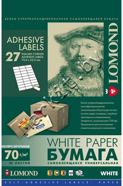 Markit » Бумага для принтера » Самоклеящаяся бумага LOMOND (2100185) A4, 27 дел (70x32мм), 50 листов