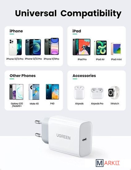 Markit » Зарядные устройства » Сетевое зарядное Ugreen CD137 50698 (белый)