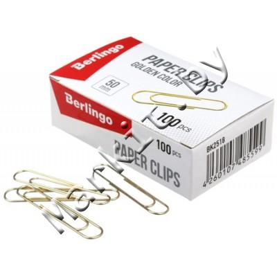 Markit » Канцтовары » Настольные принадлежности » Скрепки, кнопки, зажимы, булавки, резинки для банкнот » Скрепки Berlingo, 50 мм, 100 шт., округлые, золотистые