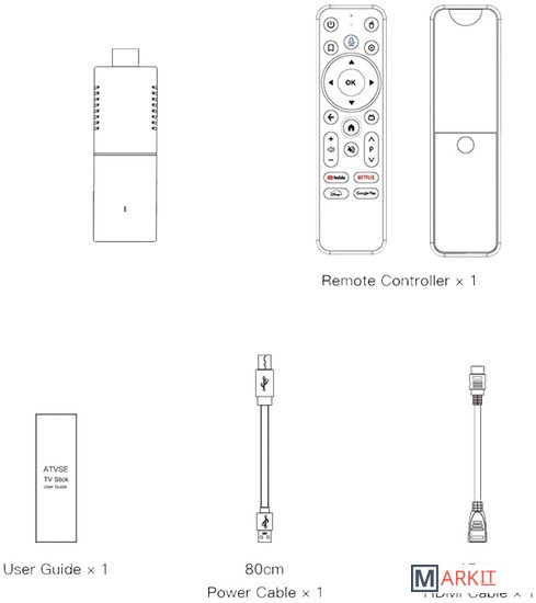 Комплект поставки | Micro-USB кабель, Руководство по эксплуатации, HDMI кабель, BT пульт дистанционного управления |