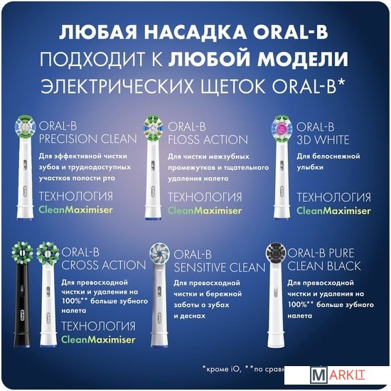 Совместимые модели | Подходит ко всем электрическим зубным щеткам Oral-B, кроме звуковых электрических зубных щеток Oral-B Sonic/Pulsonic, а также Oral-B iO Series. |