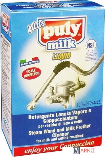 Жидкость для очистки ручных и автоматических капучинаторов, молочных трубок, панарело и т.д. PULY MILK обеспечивает полное удаление всех наростов, внутренних и внешних, уничтожая бактерии, которые могут попадать в напиток, если не пользоваться средством периодически.