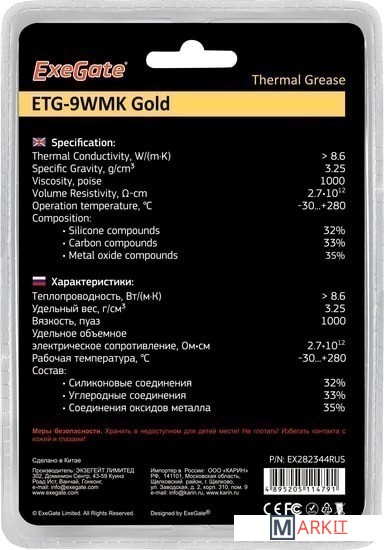 Markit » Системы охлаждения » Термопаста ExeGate ETG-9WMK Gold EX282344RUS (8 г.)