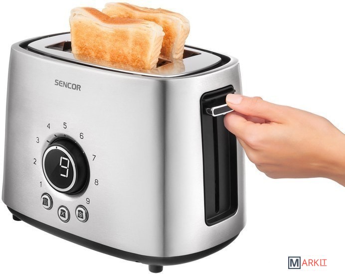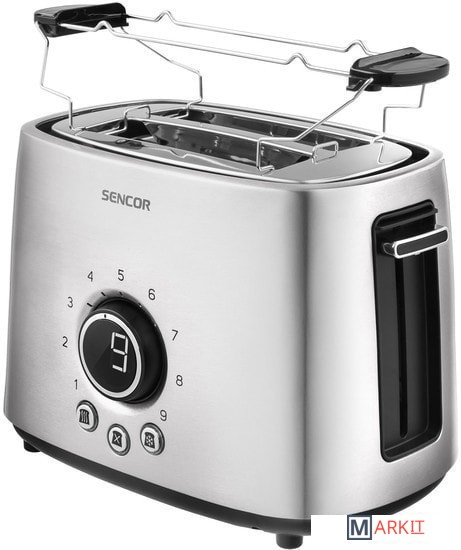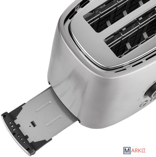 2 отверстия для запекания двух тостов (длина 135 мм). Место для свернутого сетевого кабеля. Длина шнура питания: 1 м.