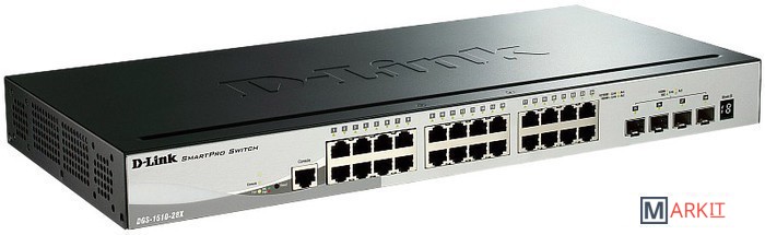 Стекируемый гигабитный коммутатор SmartPro с 24 портами 10/100/1000Base-T 4 портами 10G SFP+.