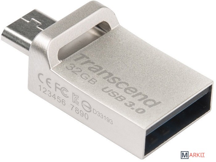 На одном конце JetFlash 880 располагается полноразмерный разъем SuperSpeed USB 3.0, который дает возможность подключить флэш-накопитель к любому оснащенному интерфейсом USB устройству и обеспечивает в 10 раз большую пропускную способность, чем USB 2.0. На другом конце накопителя находится разъем micro USB для подсоединения к мобильным устройствам.Благодаря технологии производства COB (Chip on Board) накопители JetFlash 880 полностью пыле- и влагонепроницаемые.