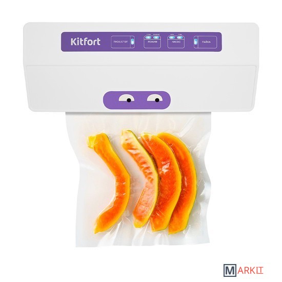 Вакууматор — устройство для вакуумной упаковки продуктов. Вакуумирование позволяет защитить от пыли, грязи, сохранить аромат и продлить сроки годности пищевых продуктов. Такой метод хранения уменьшает риск развития бактерий, которые появляются благодаря взаимодействию пищи с воздухом. Удаление воздуха из пакета гарантирует замедление процессов брожения, окисления и испарения, позволяя сохранить приятный внешний вид и качество самых разных продуктов питания.Вакууматор очень прост в использовании. Чтобы провести запаковку продукта, необходимо поместить его в специальный пакет, предназначенный для вакуумирования. Открытый край пакета укладывается в вакуумную камеру. После чего нужно закрыть крышку вакууматора и включить упаковку в автоматическом режиме. Вакууматор начинает выкачивать из пакета воздух. В результате образования вакуума пакет плотно обжимает содержимое. Как только воздух удален, начинается пайка открытой стороны пакета. В результате воздух уже не сможет проникнуть внутрь.Вакуумирование ускоряет засолку, маринование и мочение. В вакууме процесс обработки продуктов такими способами значительно ускоряется.Метод вакуумирования применяют не только в кулинарии, но и в других областях. Для туристических и бытовых нужд в вакуумный пакет можно поместить документы, деньги, спички, лекарства, мобильный телефон, карту, компас, чай и другие предметы. Охотники могут запаковать порох и патроны. Это защитит их от сырости и попадания воды. Серебряные украшения, коллекционные монеты, значки, упакованные таким способом, не будут тускнеть со временем.Вакуумная упаковка продуктов и вещей помогает значительно сэкономить место как в холодильнике, чемодане, так и по всей квартире. Пакеты с откачанным воздухом и сжатым содержимым занимают гораздо меньше пространства.В KT-1523 есть режимы для вакуумирования сухих, влажных или мягких продуктов. Прорезиненные ножки делают устройство более устойчивым и не дают скользить по столу во время работы.