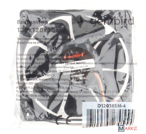 Markit » Системы охлаждения » Вентилятор для корпуса Gembird D12038SM-4