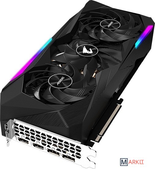 Система охлаждения в исполнении Max-Covered представлена одним 100-мм и двумя 115-мм вентиляторами с альтернативным направлением вращения. Сформированный воздушный поток полностью накрывает всю поверхность радиатора.Размещенный на графической плате прогрессивный ЖК-дисплей позволяет выводить текстовую, графическую или анимированную информацию в GIF-формате. Средствами RGB Fusion 2.0 можно выбрать вариант подсветки на основе имеющихся профилей.Настраиваемые параметры цветовой схемы, 16,7 млн. цветовых оттенков, многочисленные световые эффекты и возможность синхронизировать плату с другими устройствами семейства AORUS.