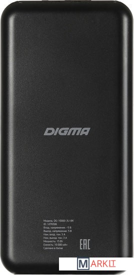 Markit » Портативные зарядные устройства » Внешний аккумулятор Digma DG-10000-3U-BK