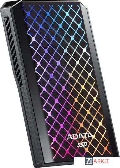 Накопитель оснащен RGB панелью, которая занимает 74% передней крышки устройства.