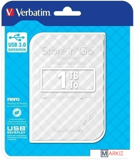 Markit » Внешние накопители (HDD и SSD) » Внешний накопитель Verbatim Store 'n' Go USB 3.0 1TB Белый [53206]