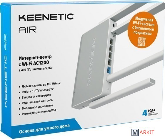 Комплект из двух интернет-центров Keenetic для создания бесшовной двухдипазонной 2,4+5 ГГц сети Wi-Fi AC1200. Keenetic Extra в роли главного роутера может резервировать выход в интернет через USB-модемы 3G/4G, обеспечивает сетевые функции для USB-накопителя или USB-принтера. Keenetic Air добавляется в Mesh Wi-Fi-систему без дополнительной настройки.